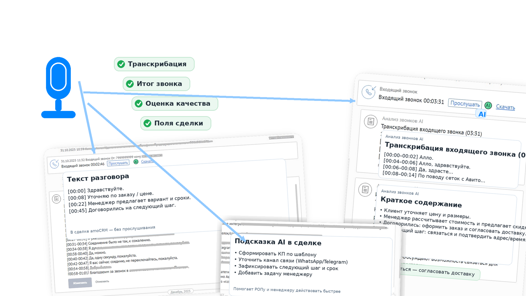 Голос → текст, итог, оценка и ключевые поля — прямо в сделке